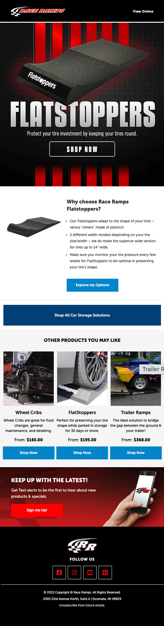 I designed and developed all email communications for Race Ramps, leveraging data-driven creative strategies to enhance brand awareness and drive sales growth.